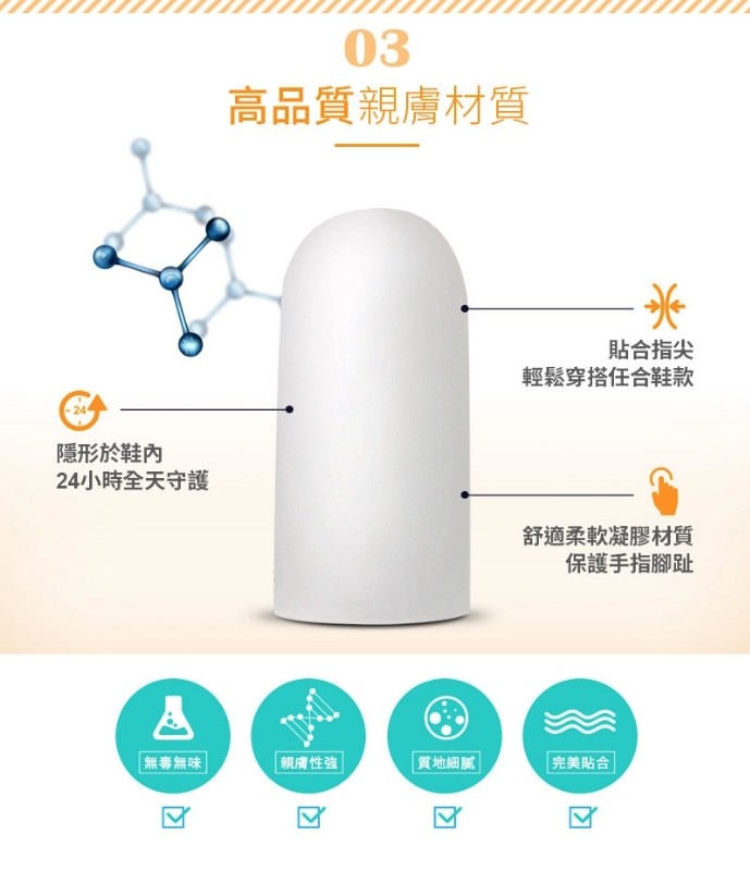 1. 柔軟凝膠能舒緩手指/腳趾 所承受的摩擦與壓力。