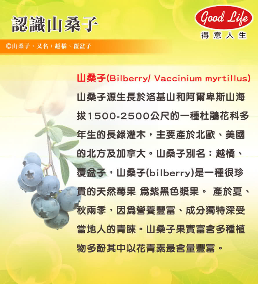 得意人生 高單位黑醋栗葉黃素,採用美國進口原料,金盞菊萃取高單位30mg葉黃素,再添加黑醋栗、山桑子、紅藻(含蝦青素),還有豐富維生素與礦物質,很適合成人每日營養補充。也提醒您每日注意視力保健,看遠看近都輕鬆。
