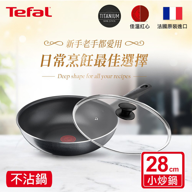 採用Tefal獨家研發的TITANIUM鈦合金強化不沾塗層,添加鈦合金微粒子,表面滑順又抗磨耐刮,不沾效果佳、好清洗!加深容量及易傾倒鍋緣設計,讓您為家人下廚更輕鬆愉快,享受美味料理,天天都是家庭日!