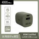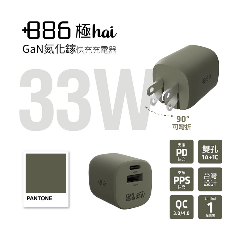 +886 [極Hai] GaN氮化鎵 33W PD 2孔快充充電器(軍綠)
