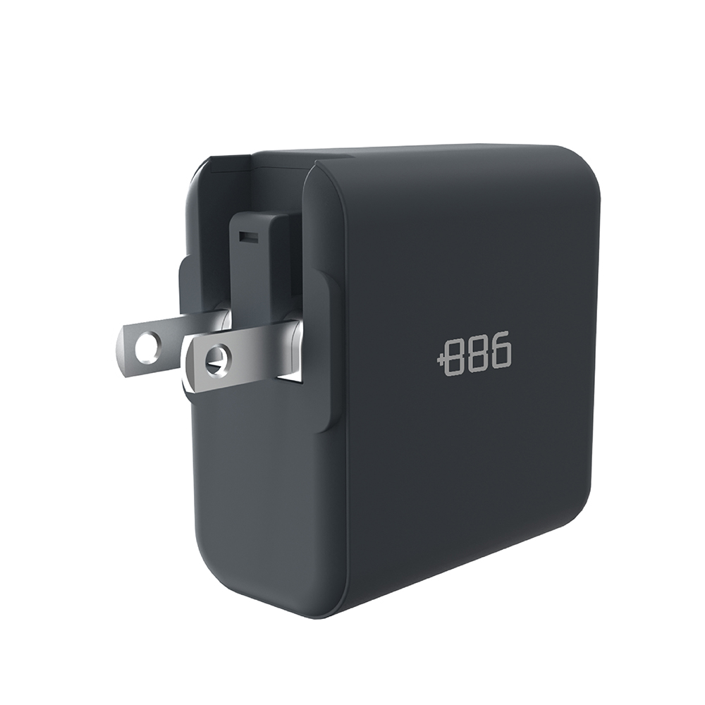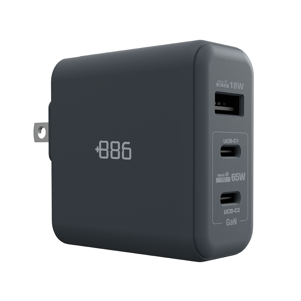 +886 [極Hai] GaN氮化鎵 65W PD 3孔快充充電器(迷霧灰)